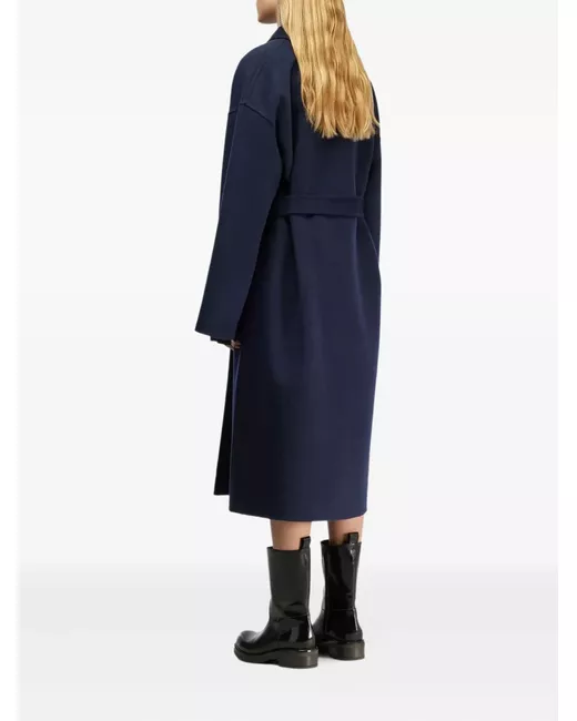 navy blue wool double-breasted button fastening notched lapels detachable belt