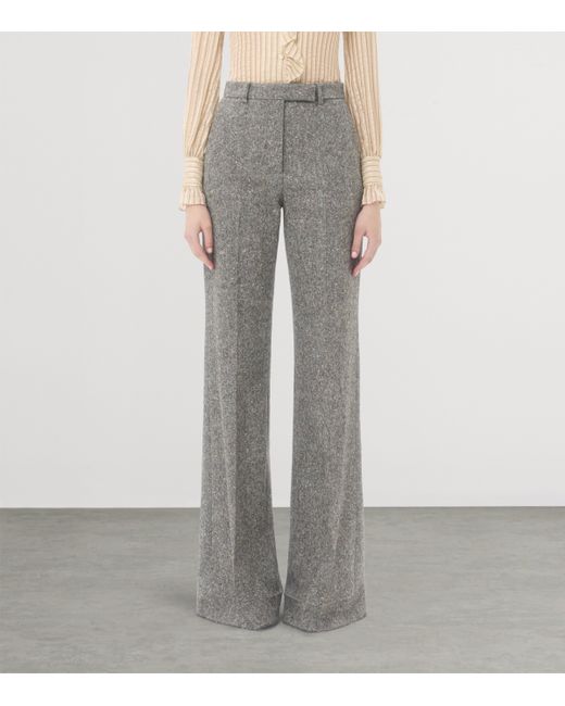 Although renowned for its elegant couture creations, Valentino still knows how to tap into its playful tendencies - as seen in this pair of trousers. Cut in a flared silhouette, the wool-blend material sees colourful flecks woven into the fabric - just look closely to glimpse dots of red, green, yellow and blue among a field of grey.
