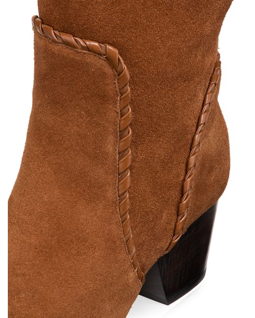 Alexandre Birman's Victoria Saddle boots highlight the luxe Italian suede with whipstitch seams and a structured square toe. Square toe Pulls on Suede upper Leather lining Leather sole Made in Italy SIZE Heel: about 2.5" (60mm) Shaft: about 13.5" Please note: This brand fits slightly smaller. Consider ordering half a size up. Women's Shoes - Designer Classics > Alexandre Birman > Saks Fifth Avenue. Alexandre Birman. Color: Espresso. Size: 6.