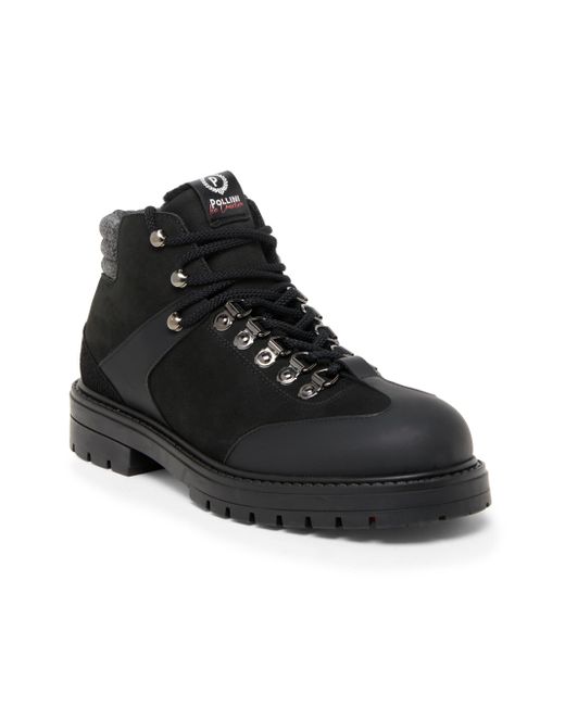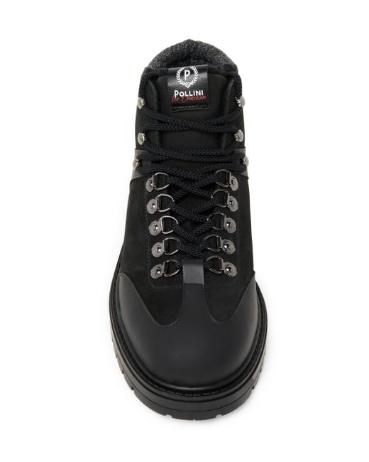 This ankle boot from Pollini features a leather upper with knit detailing at the heel. A rubber sole and lace-up vamp lend added comfort to this pair. Round toe Lace-up style 80% leather/ 8% wool/ 6% polyester/ 5% polyurethane/ 1% nylon Rubber sole Made in Portugal. Men's Shoes - Mens Classic Footwear > Pollini > Saks Fifth Avenue. Pollini. Color: Black. Size: 6.