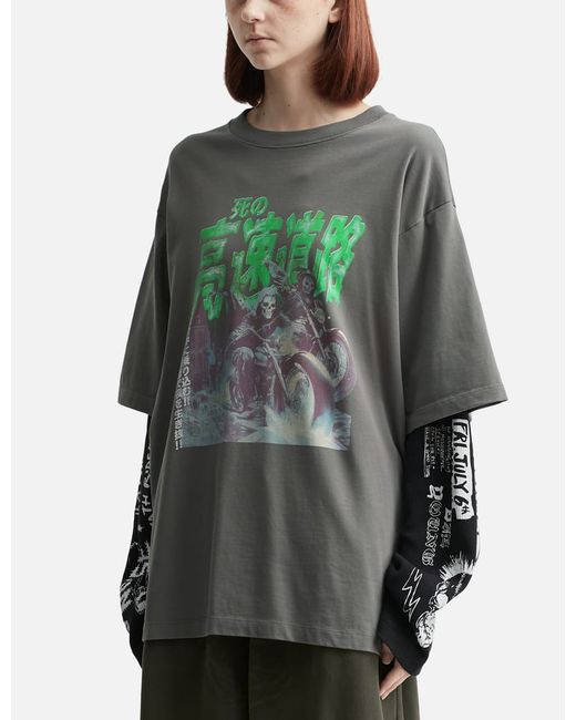 LUU DANDouble Deck T-shirtDouble-layeredOversized fitCrewneckLong sleeveWaffle knit sleeves'Ghost riders’ graphic on front and sleevesColor: Ghost Rider / Light Smoke