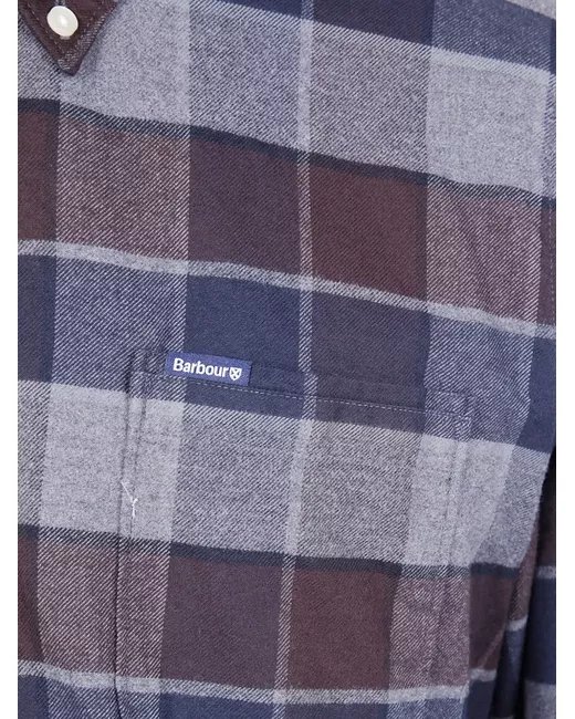blue and dark oak checked pattern button-down collar chest patch pocket button fastening long sleeves
