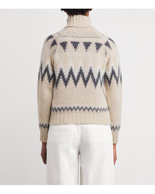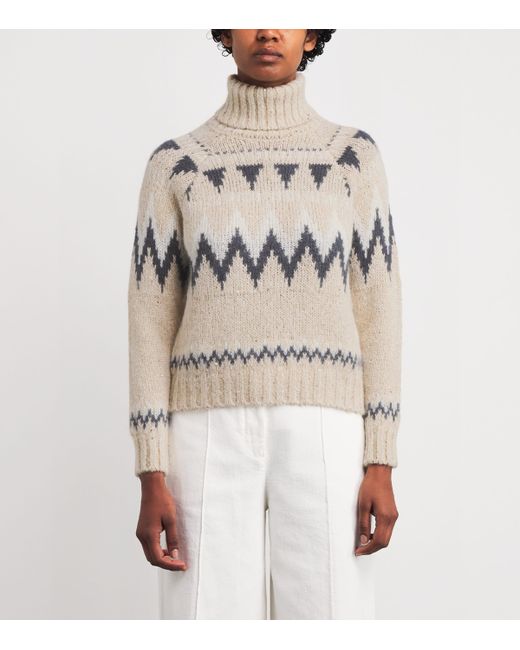 Eleventy's knitwear encapsulates the brand's penchant for subtly elevating wardrobe classics, with this rollneck sweater embodying this sentiment aptly. Its chunky stitch, rollneck silhouette and jacquard design meet the archetypes of a winter warmer, with the piece enhanced by a glimmering iridescence through its intricately stitched sequin details and woven metallic thread.