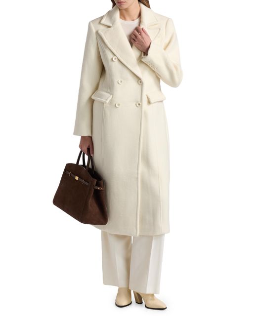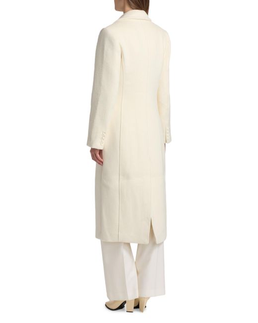 Crafted of a soft wool blend, Toccin's Bria double-breasted coat features a structured-shoulder silhouette, notch lapels, and side flap pockets. Notch lapels Structured shoulders Long sleeves Side flap pockets Double-breasted button-front closure 65% wool/15% TENCEL lyocell/15% polyester/5% alpaca Dry clean Imported SIZE & FIT About 50" from shoulder to hem Model measurements: 5'10" tall Model is wearing a US size Small. Modern Collections - Branded Separates > Toccin > Saks Fifth Avenue. Toccin. Color: Ivory. Size: XS.
