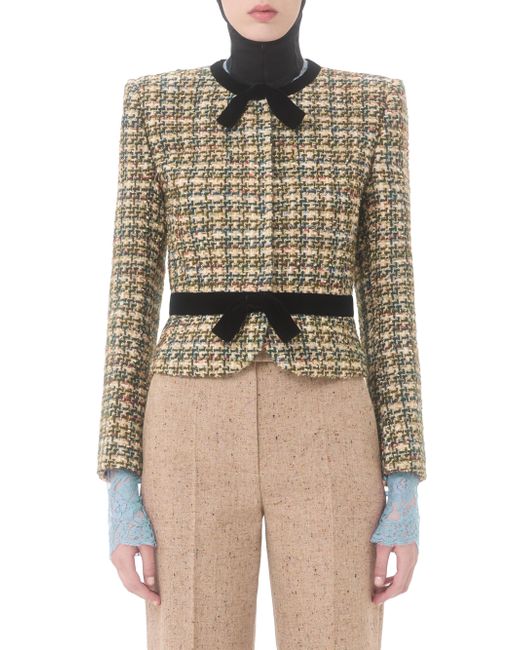 Tweed jacket with velvet details. Shoulder pads Front snap button closure Multicolor Tweed (33% Polyamide, 31% Acrylic, 31% Wool, 5% Polyester) VLogo Jacquard Flower Lining (75% Acetate, 25% Silk) Length: 51 cm / 20.1 in. from the shoulders in an Italian size 40 The model is 176 cm / 5'9'' tall and wears an Italian size 40 Made in Italy. Lsd Rtw - Valentino Rtw > Valentino Garavani > Saks Fifth Avenue. Valentino Garavani. Size: 2.