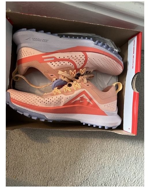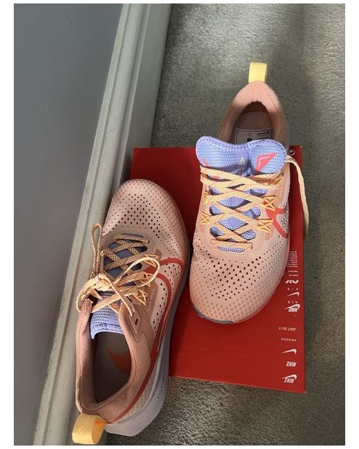 Brand new never worn. Very comfy shoe. Will be sent within 24 hours of purchase I also have proof of purchase. The Nike React Pegasus Trail 4 W in Artic Orange / Magic Ember is a stylish and modern pair of women's sneakers, perfect for activewear. Featuring a lace-up closure and a low top shoe shaft style, these sneakers offer a comfortable fit with cushioned and rubber outsole material. The vibrant orange colour and colourblock pattern add a pop of colour to your outfit, making them a trendy choice for autumn, summer, and spring seasons. Made with a mesh fabric upper and foam insole, these Nike React Pegasus Trail 4 W sneakers are designed for performance activities like gym training, walking, and running.