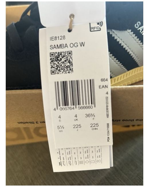 The Adidas Samba OG Women's Trainers in size 4 are a stylish and comfortable pair of black sneakers perfect for casual occasions during the summer season. Slight damage to corner of full box.