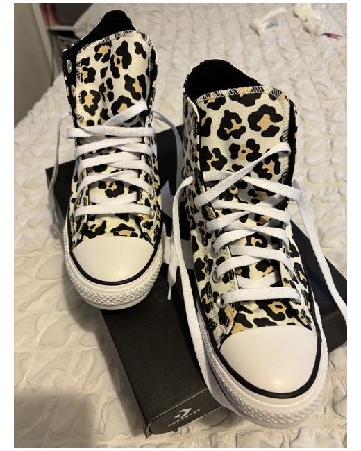 This product is a brand new pair of UK size 7 Converse Chuck Taylor sneakers in a stylish leopard print design. The shoes feature a classic lace-up closure, rubber outsole, and standard shoe width, making them perfect for casual occasions in autumn, summer, and spring. Made in Vietnam, these sneakers are a must-have for any fashion-forward woman looking to add a touch of wildness to their outfit.