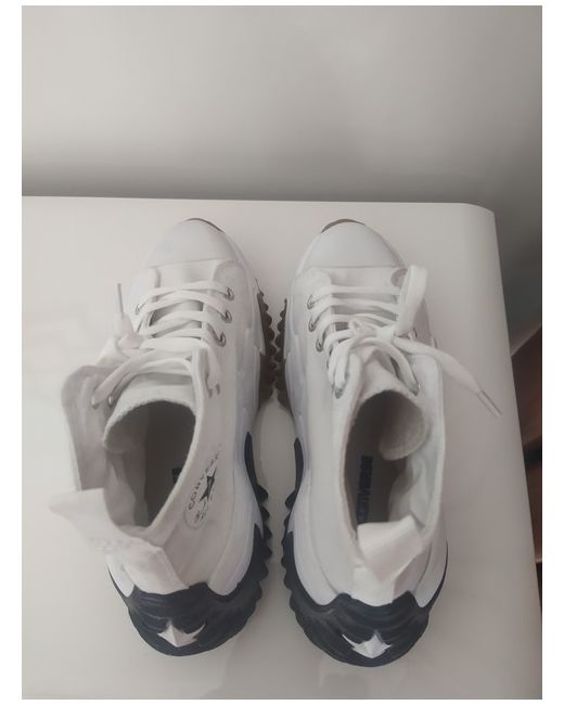 This product is a brand new pair of Converse white women's boots in size 5. The boots are stylish booties made from cotton, perfect for adding a touch of versatility to any outfit. The classic white colour makes them easy to pair with a range of ensembles, making them a must-have for any fashion-conscious woman.