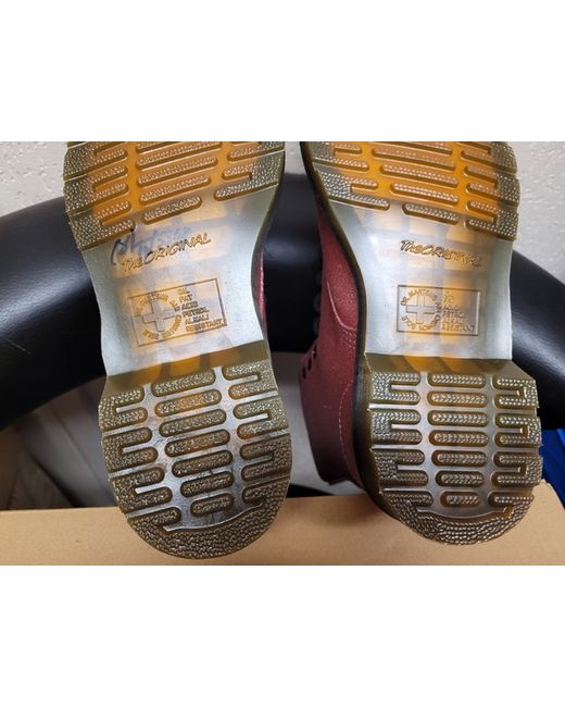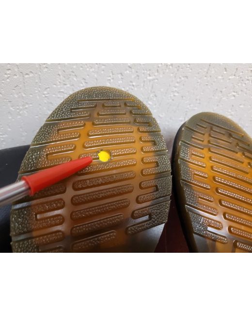 " dr martens ( sample Boots ) hole on right boot sole see pictures 15 and 16 for details. ".