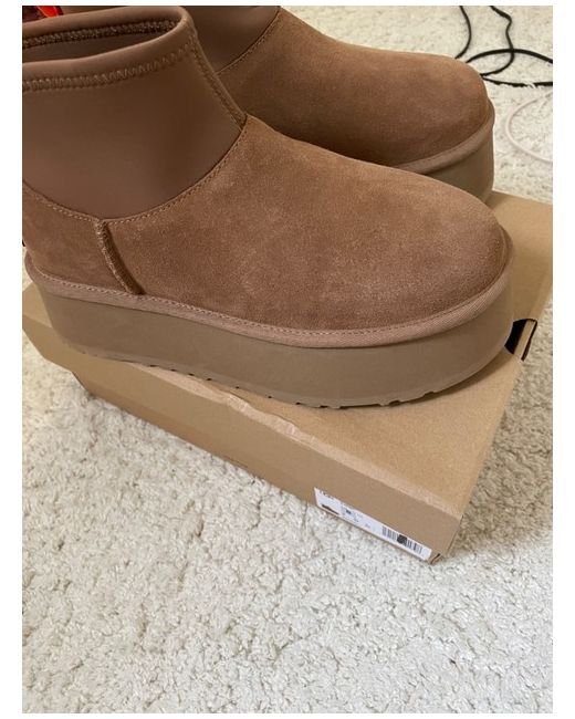 (Ugg, platform, chestnut size 6. New without original box but box sent in new. Not much to ask really :).
