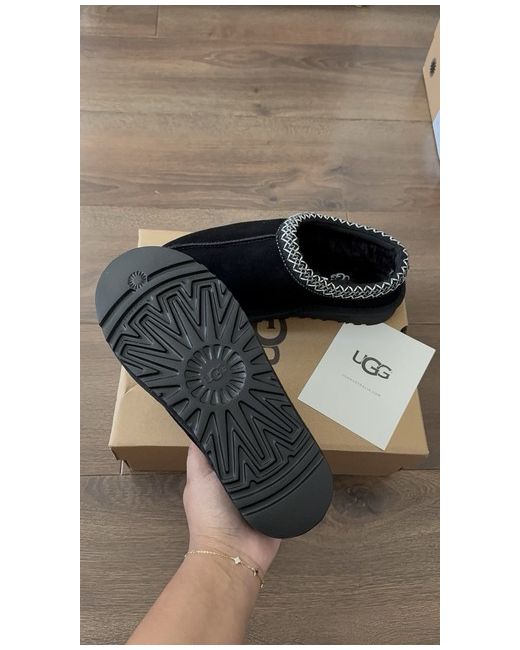 The Tasman UGG Women's Black slippers by UGG Australia are a stylish and comfortable choice for the winter season. With a round toe shape and standard shoe width, these slip-on style slippers feature a suede upper material and wool insole for ultimate warmth and comfort. The iconic UGG logo adds a touch of sophistication to a casual slipper, making it perfect for lounging around the house or running quick errands in the colder weather. Made in Vietnam, these UGG Tasman slippers are a must-have for any woman's winter wardrobe.