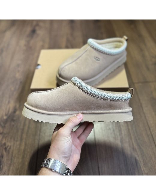 The UK 5 UGG Tazz "Sand" slipper is a stylish and comfortable option for casual wear during the winter season. In beige colour with suede upper material, this slip-on style slipper features a standard shoe width for a comfortable fit. Made by UGG Australia, it is a women's shoe perfect for lounging around and adding a touch of elegance to your outfit. With same-day dispatch available, you can enjoy this luxurious slipper sooner rather than later.