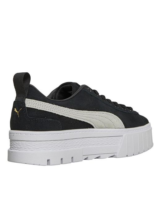 Puma Womens Mayze Trainers Black/White Puma low profile lace up suede leather trainers with platform sole. 38078401 Suede leather upper. Textile and synthetic lining. Lace fastening.