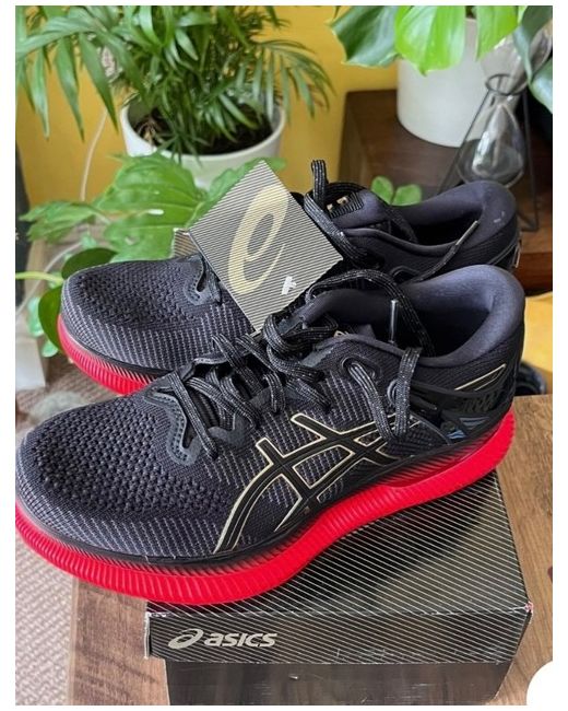 ASICS Metaride women’s trainers black & red. Brand new in box. Comes with a free pair of London running socks