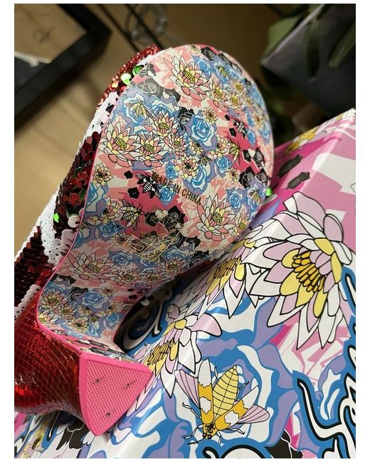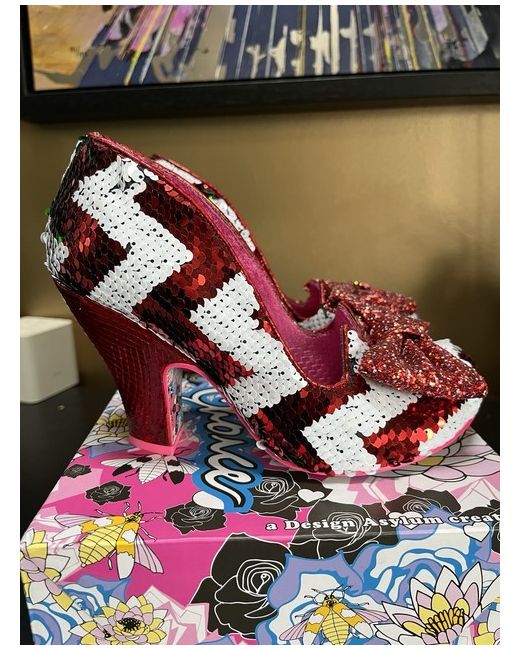 The best Christmas shoes !!! Reversible sequins chop and change the colour mix it up . Selling another similar pair equally as stunning. Bright pink detailing makes these pop ! Selling my entire collection Listed on other selling platforms