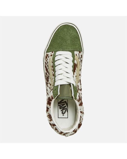Vans Old Skool Trainers Chive Vans low profile lace up leather trainers. Leather upper. Textile lining. Lace fastening.