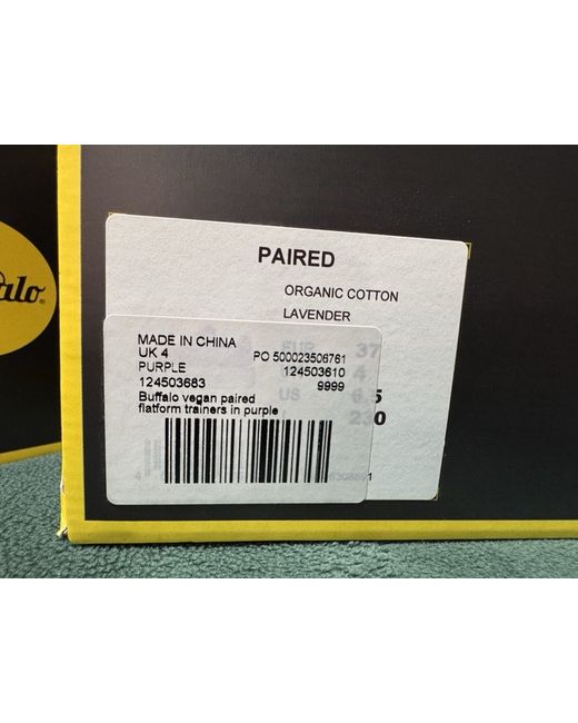 These Buffalo Violet Vegan Trainers in size 4 are a stylish choice for women looking for a casual and sustainable option . Made from 100% cotton upper material, these lace-up sneakers feature a vibrant purple colour and are adorned with the signature Buffalo branding. The vegan aspect of these trainers appeals to those looking for a cruelty-free footwear option without compromising on style. Perfect for everyday wear, these trainers offer a comfortable standard shoe width for added convenience. Ideal for those who appreciate both fashion and ethics in their footwear choices.