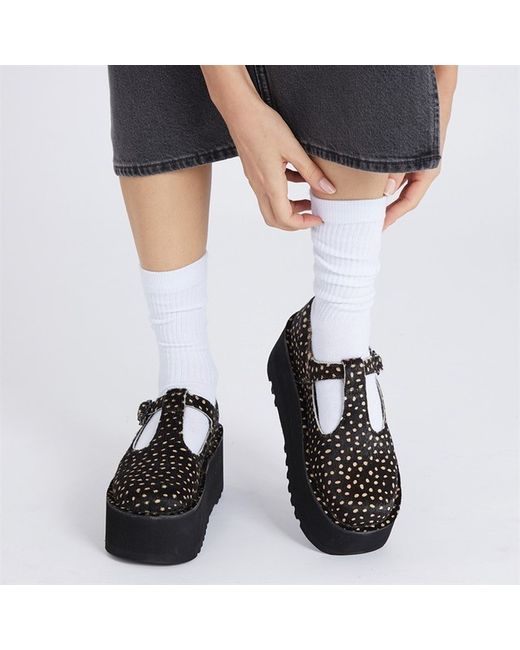 Kickers Womens Kick T Bar Platform Sandals Black Kickers buckle fastening t-bar shoes with platform sole. Leather upper. Synthetic lining. Buckle fastening.