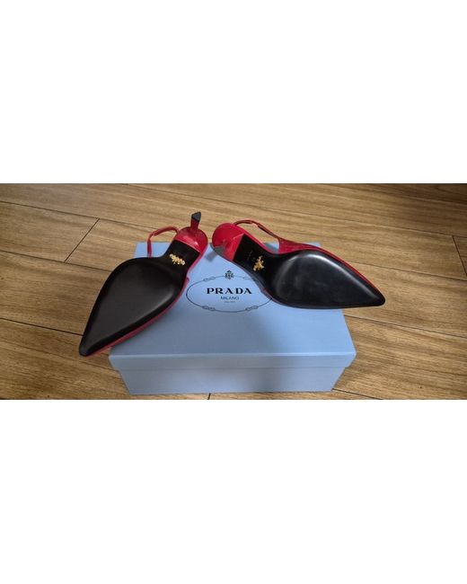 The PRADA Women's Shoes are a stunning pair of high heel heeled shoes in a vibrant red colour, perfect for a party or cocktail occasion. Made in Italy from luxurious leather, these strappy heels feature a standard shoe width and a leather outsole and lining. With a stylish design and the renowned PRADA brand, these shoes are a fashion-forward choice for the spring season. Made with quality craftsmanship, these shoes are a statement piece that will elevate any outfit.