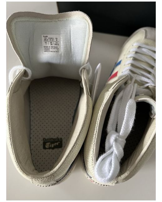 The Onitsuka Tiger Women's Mexico Runner Sneaker in White/Blue is a stylish and casual trainer with a low top design and standard shoe width. This shoe is perfect for the spring season and features a vintage-inspired design with a logo accent. Made of leather, it offers both comfort and durability. With a UK shoe size of 7 and US size of 8, this sneaker is designed for women who appreciate quality and style in their footwear.