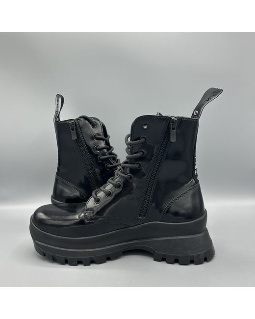 The Stella McCartney Trace Brushoff Black Vibram Sole Combat Boots in UK size 3, EU size 36, and US size 6 are a stylish and versatile choice for women. With a sleek black synthetic upper and ankle shaft style, these boots features a zip closure and round toe shape. Perfect for travel or casual occasions, these combat-style boots from the renowned Stella McCartney brand are made in Italy and offer standard shoe width for a comfortable fit. Ideal for those looking for a chic and practical footwear option.