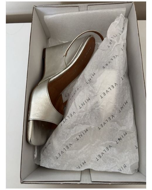 These Silver Mint Velvet Shoes in size 5 are perfect for a party or cocktail event. The glitter accents add a touch of sparkle to the silver colour, while the mule style and standard shoe width provide comfort and a feminine look. Made of synthetic material, these heels are ideal for any season and are sure to make a statement with their stylish design. The Mint Velvet brand ensures quality and a fashionable addition to any woman's shoe collection. Bright for a cruise but never worn.