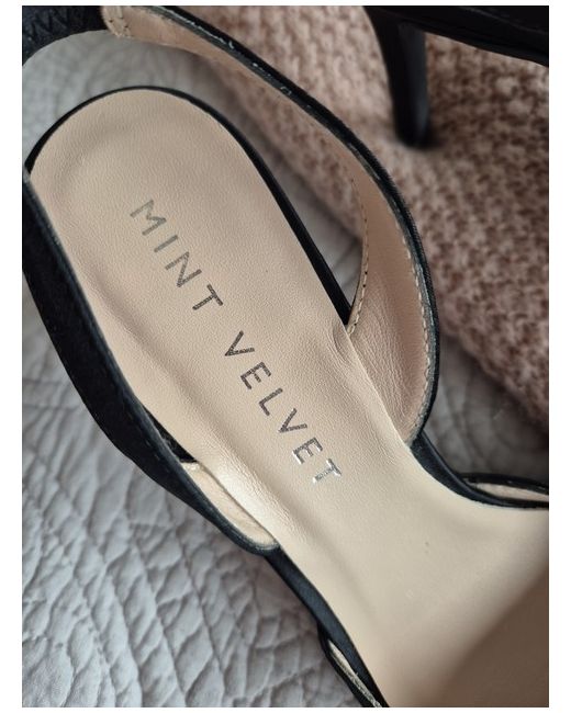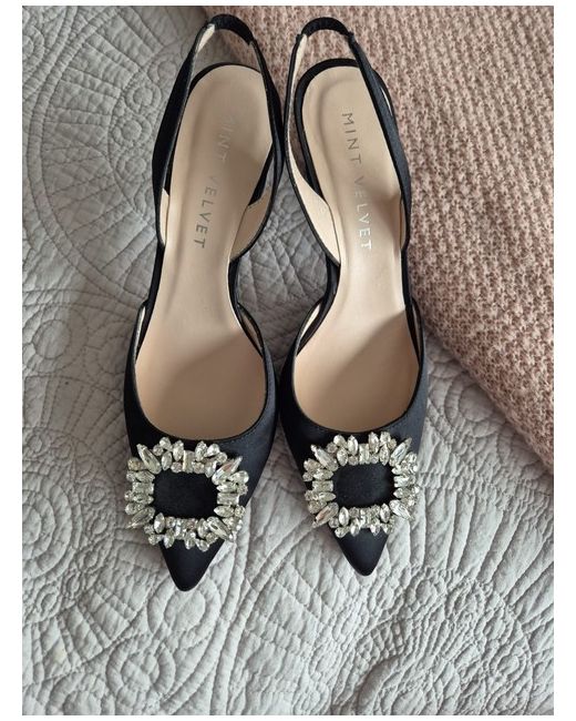 Mint Velvet black satin slingback shoes with jewel detail. Never worn. Size 5. perfect for dressing up occasions or wear with jeans for elevated casual