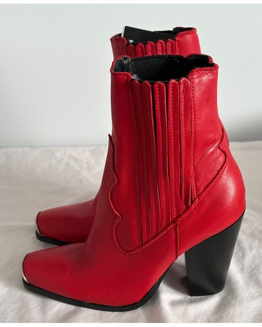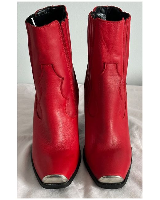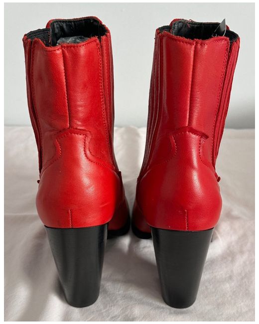 Women's Red Leather Ankle Boots 3 36 NWOB