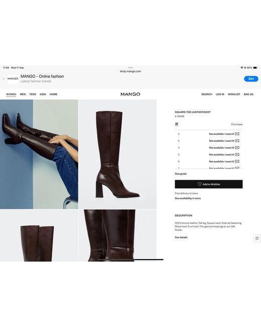 The mango Square-Toe Leather Boot in UK size 6 is a stylish and versatile addition to any woman's wardrobe. Made from high-quality black leather with a square toe shape, these ankle boots are perfect for casual occasions. The standard shoe width and comfortable design make them suitable for everyday wear, while the brand Mango ensures a touch of quality and style. Perfect for adding a chic touch to any outfit, these boots are a must-have for any fashion-forward woman. Scuffs to one heel.