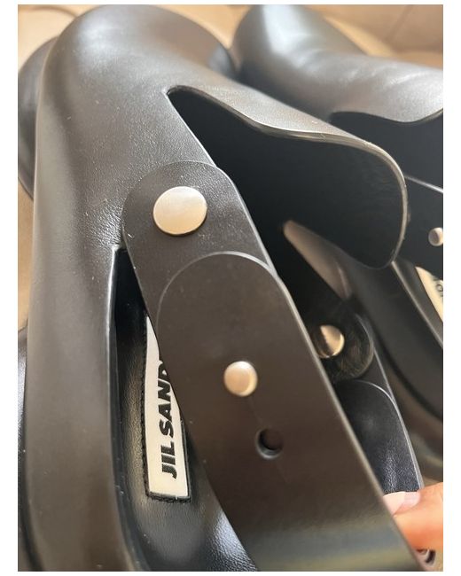 The product is a pair of Jil Sander black leather mules clogs in size 41, which equates to a UK shoe size 8. This can be unisex. New with box and dust bag. These flat shoes are designed for casual occasions during the summer season. Made from high-quality leather, both the upper and outsole materials are crafted from the same durable leather, ensuring both style and comfort. With the brand's reputation for quality and timeless design, these mules clogs are a stylish addition to any woman's wardrobe. Grab a bargain
