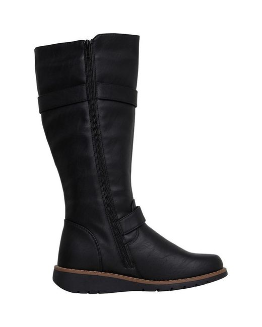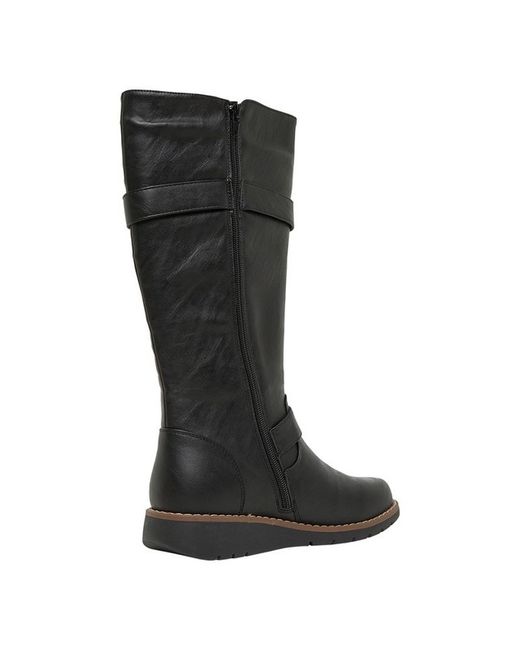 Board Angels Womens Long Wedge Boots Black Board Angels tall side zip fastening boots with soft faux fur lining. Textile and synthetic upper. Textile and synthetic lining. Side zip fastening.