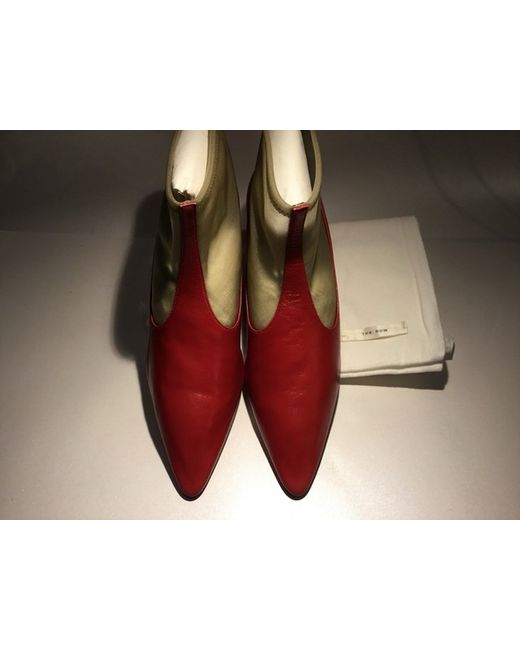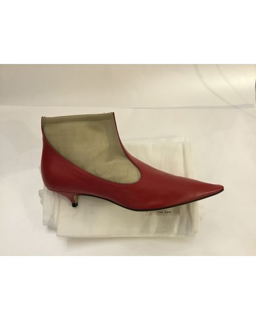 The Row Beige/Red Mesh Boots Ankle-high nylon mesh and buffed Nappa Lambskin boots; Pointed toe, elasticised collar; Covered kitten heel with rubber injection ; Upper:textile/ Lambskin Heel 1,5