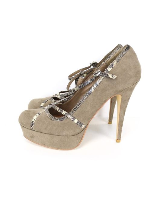 Women's Beige MORETTI Suede Heels EU39 Snake Pattern Leather High Shoes