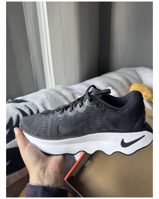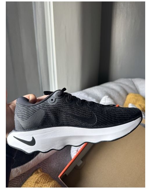 The Nike Women's Running Trainers in size 7 UK are sleek black sneakers with a lace-up closure and standard shoe width. These trainers feature a low-top shaft style and a rubber cleat type, perfect for running and jogging activities. The foam insole provides comfort and support, while the Nike logo accents add a touch of style to the design. Ideal for the spring season, these Nike Motiva trainers are a must-have for any active woman's wardrobe.