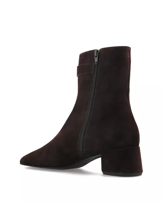 dark coffee gold-tone hardware side zip fastening block heel round toe