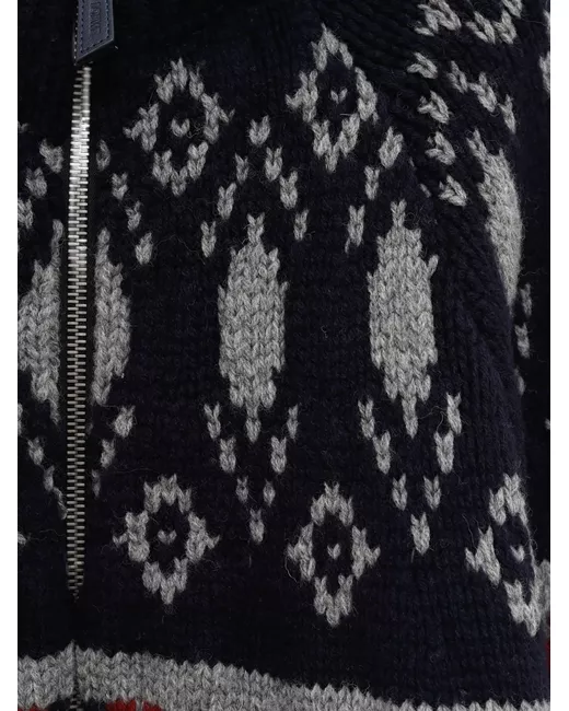navy blue patterned zip closure high neck long sleeves ribbed hem
