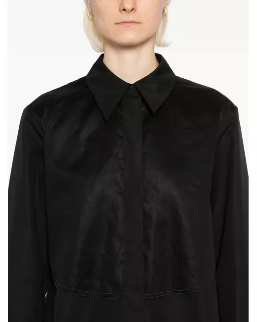 black concealed front button fastening buttoned-cuff sleeves
