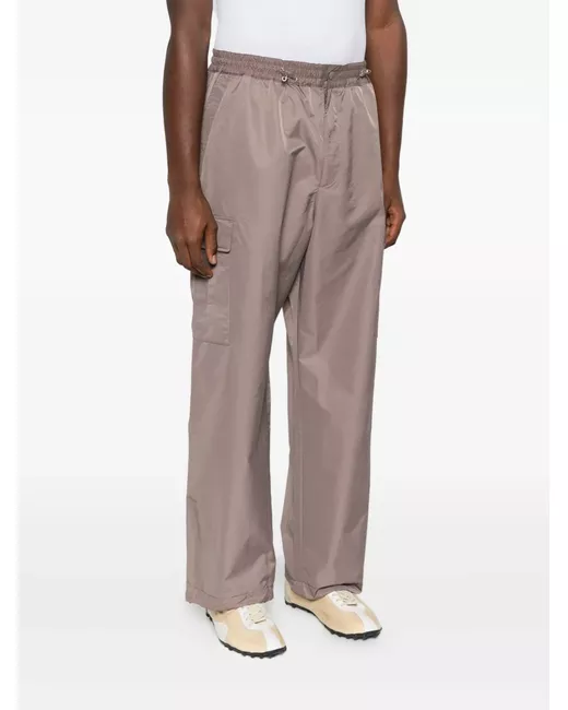 beige elasticated waistband logo appliqué side cargo pocket drawstring detail