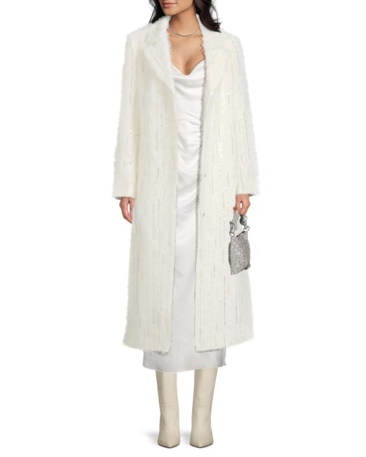 This long coat from Milly is designed with glittering rhinestone embellishing. Notch collar Long sleeves Waist welt pockets Back vent Concealed front snap closure 61% polyamide/39% polyester Lining: 100% polyester Dry clean Imported SIZE & FIT About 49" from shoulder to hem Model measurements: 5'10" tall Model is wearing a US size Small. Outerwear And Swimwear - Wool > Milly > Saks Fifth Avenue. Milly. Color: White. Size: XS.