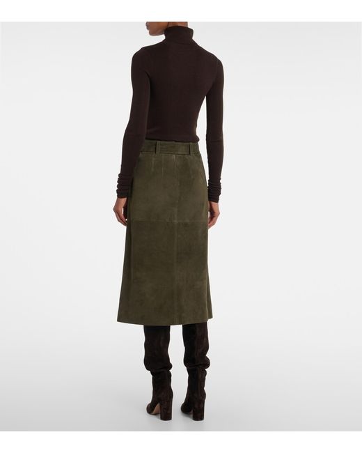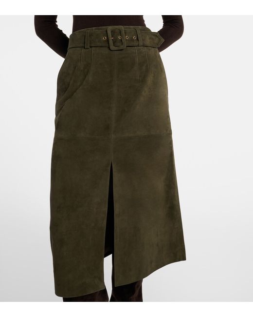 Material: 100% lamb leather (suede). Care instructions: specialist clean. Made in China. Designer color name: Cypress. Item color: green. Lining: 100% polyester. Closure: concealed zipped back. Detachable belt. Pockets: slant pockets. Short vent. Leather.
