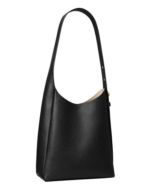 Crafted of leather, the Small Romy hobo bag from Tory Burch features an asymmetrical topline and a slightly unstructured silhouette for a striking, dimensional look. The design is finished with a spacious interior and adjustable shoulder strapfor easy carrying. Adjustable shoulder strap Interior: one zip pocket Dust bag Clip closure Leather Lining: textile Imported SIZE About 8.25"W x 10.5"H x 4"D Adjustable shoulder strap: about 11.75" drop ABOUT THE BRAND Since debuting her brand in 2004, New York-based designer Tory Burch has made an impact on the fashion world with her handbags and shoes, and playful-yet-polished clothing. Today, Burch remains inspired by color and travel, with her vibrant collections bursting with prints, and her instantly recognizable double-T logo drawing from Moroccan architecture. Handbags - Tory Burch Handbags > Tory Burch > Saks Fifth Avenue. Tory Burch. Color: Black.