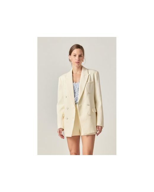 Our double-breasted jacket is a must-have for any fashion-forward individual. With peak lapels and long sleeves this jacket exudes elegance and sophistication. The welt pocket details add a touch of refinement while the front button closure ensures a perfect fit.