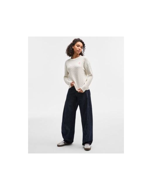 Get your style en pointe with a crewneck cable-knit sweater from Hooked Up by Iot that features embroidered ballet slippers.
