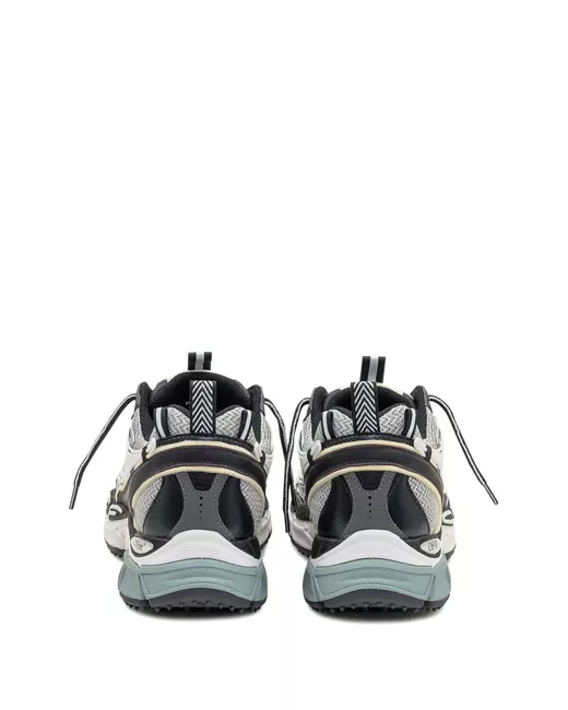 grey and black arrow motif lace-up fastening pull-tab at the heel ridged rubber sole panelled design