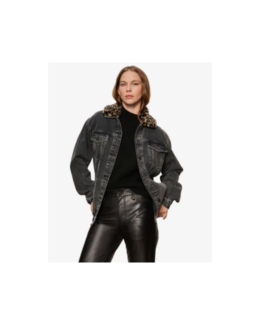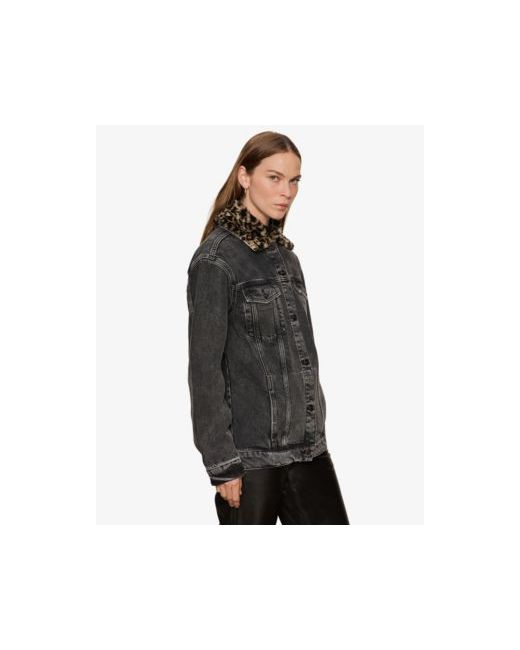 Command everyday layering with this Sanctuary long sleeve boyfriend trucker jacket, designed with a button closure for reliable wear. The chest and front pockets keep essentials accessible. The detachable leopard collar adds versatile styling options suitable for any outing.