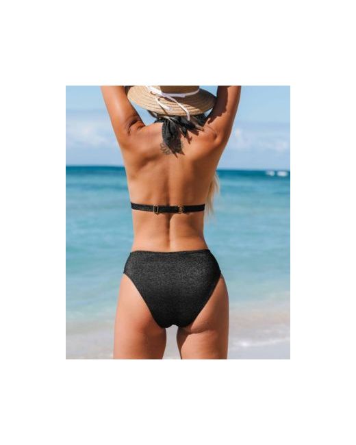 Women's Black Textured Halter Side Shirred Bikini Sets