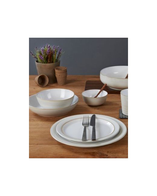 Denby's Natural Canvas Collection small platter features neutral tones and clean lines adding a rustic, contemporary accent to your table in durable stoneware for everyday dining with elegant versatility.