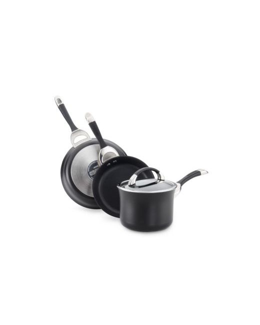 Your kitchen takes shape with a durable, updated design that conducts quick, even heat for perfect results in even less time. The heavy-gauge hard-anodized construction of each professional piece stands out in a unique windsor shape, which features a superior food release system, DuPont Autograph nonstick interior and impact-bonded stainless steel base.