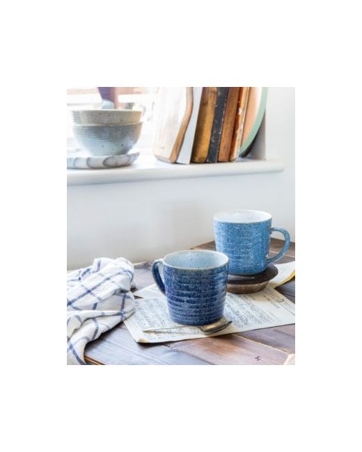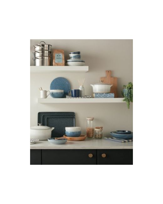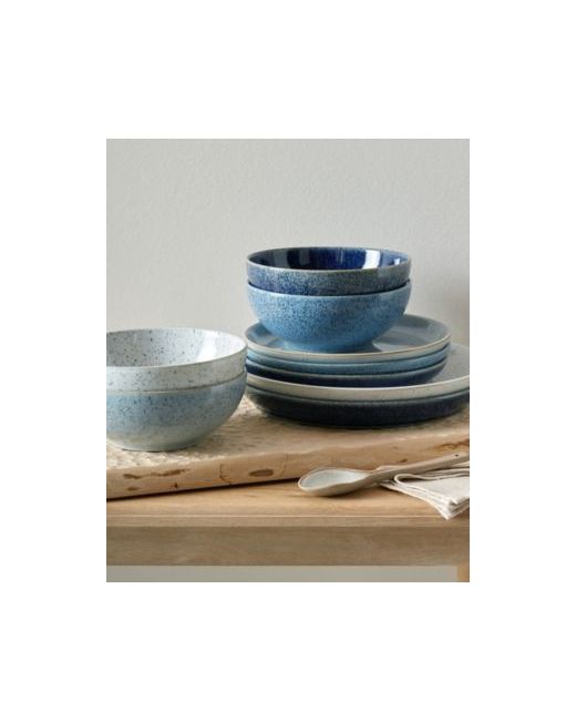 A versatile size in a mixable shade of speckled stoneware, Denby's Studio Blue Pebble medium ridged bowl features concentric interior grooves.